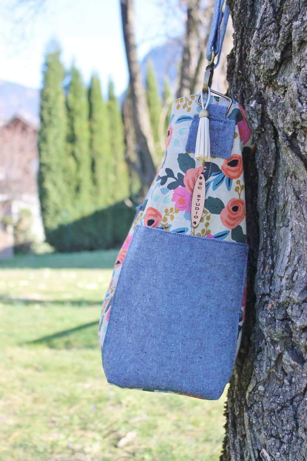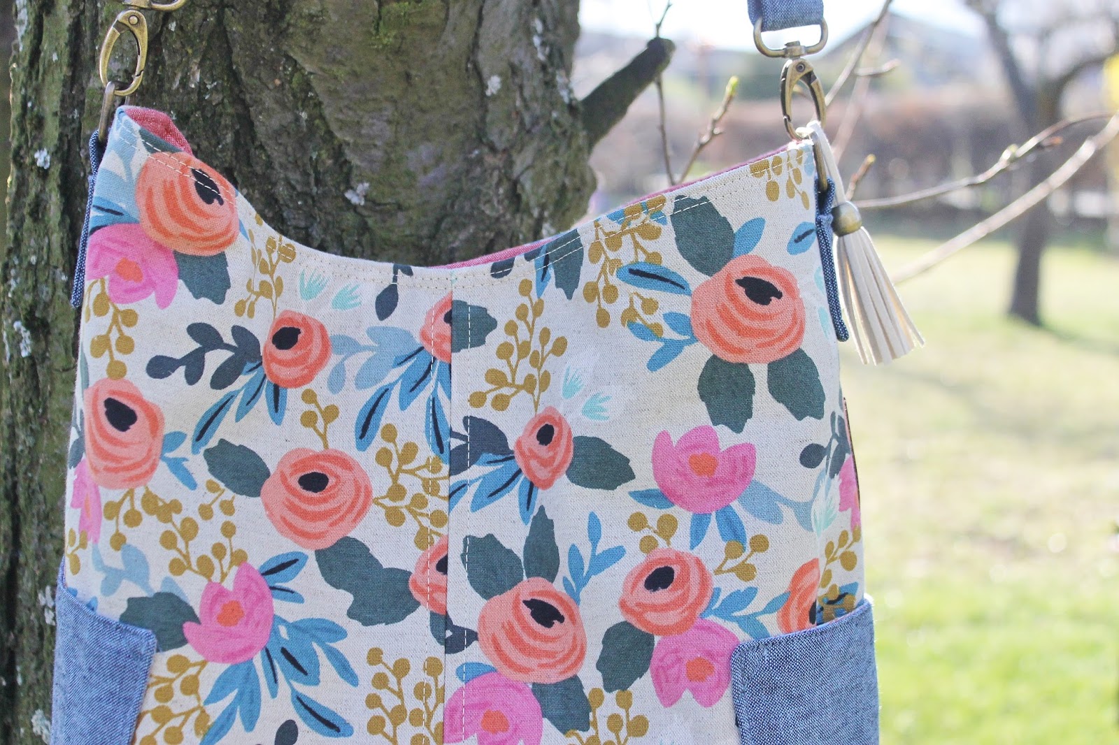 For the fabrics I chose some Les Fleurs Canvas and some Essex Yarn Dyed in Nautical for the pockets and the lining for more sturdiness.