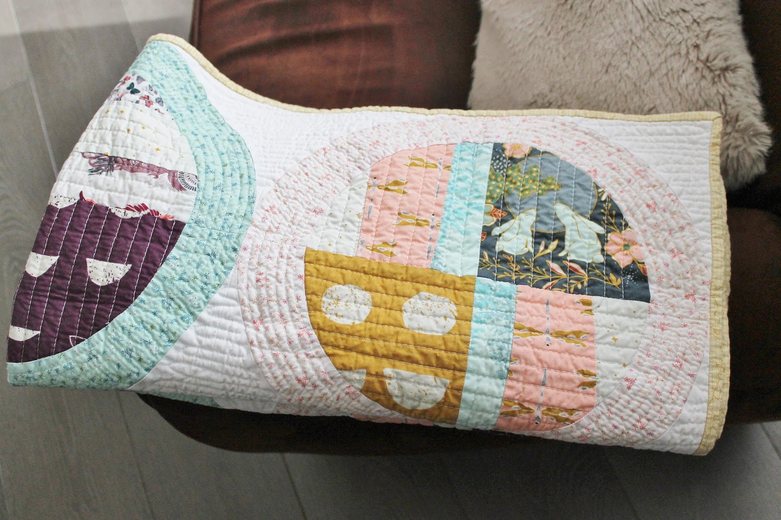 Ce patron se nomme le Propeller Quilt et je suis ravie d'avoir tenté l'aventure! Honnêtement, je suis en amour avec ce nouveau petit quilt! Il serait parfait pour un petit enfant ou un bébé, mais je ne suis pas sûre de réussir à m'en séparer!:) quelle égoïste n'est-ce pas?!