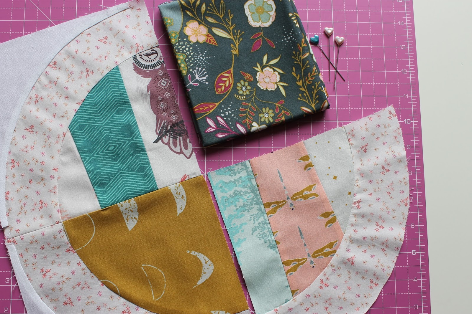 I would immediatly skip the page of the magazine, or the pattern on Pinterest if it had curved seams. But, as soon as I saw Suzy quilts' pattern the Propeller quilt, I fell in love with its modern look. I thought it would be just perfect to show off some of my favorite prints from the Nightfall collection by Maureen Cracknell.